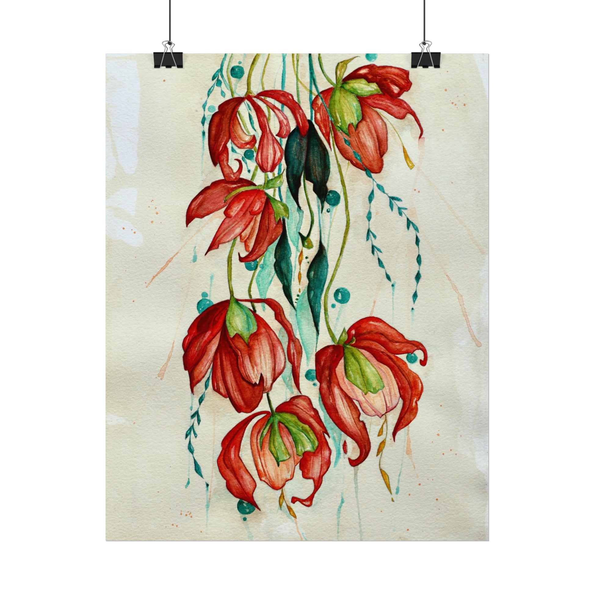 "Hanging Flowers" textured watercolor print. Printed with high-quality archival ink, the printing results are lush in color and stunning in detail reproduction. Each piece is printed on premium 285gsm paper and comes with a premium, textured matte finish.
