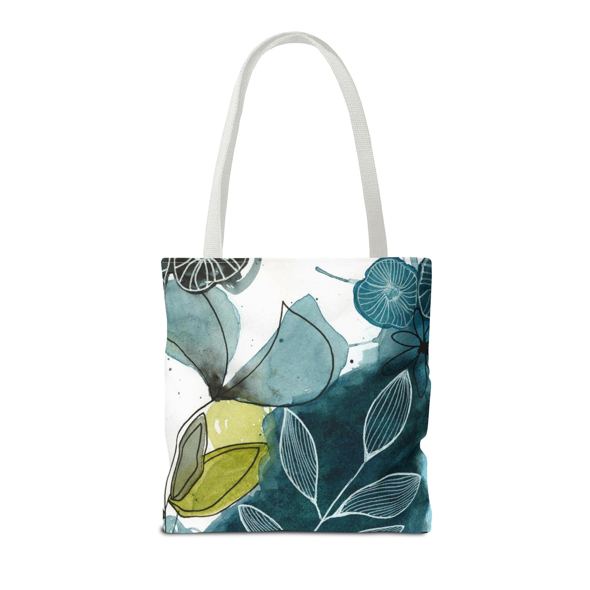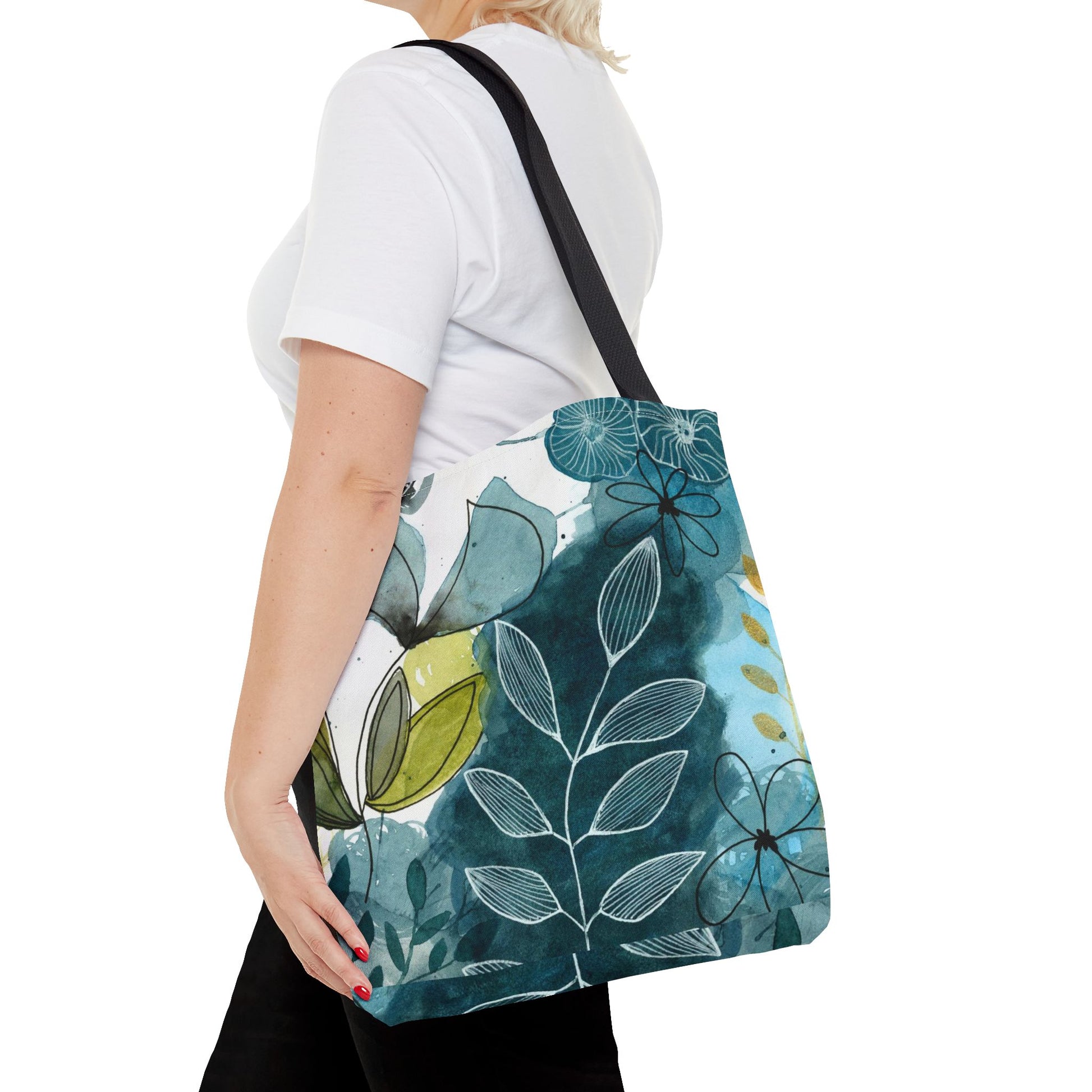 Abstract Blues Watercolor Tote Bag – Teal Floral All-Over Print